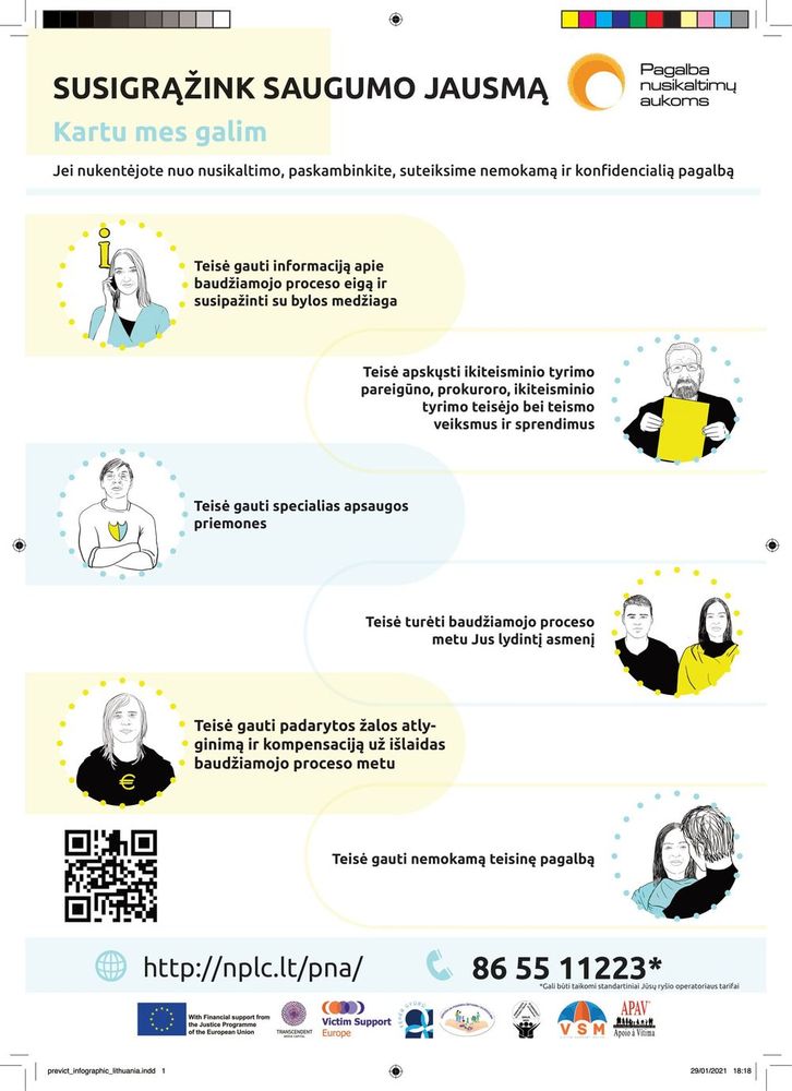Šiandien nusikaltimų aukos gali kreiptis į anoniminę Pagalbos nusikaltimų aukoms liniją. Linijos savanoriai – kriminologų, psichologų ir teisininkų komanda – neatlygintinai suteiks reikiamą informaciją ir atsakys į sudėtingoje situacijoje kilusius klausimus, patars, kur ir kaip kreiptis pagalbos bei užtikrinti savo teises.