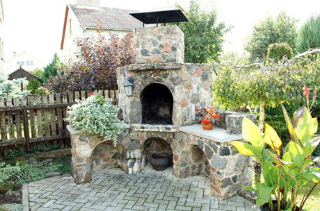 ŽIDINYS: Šeimos susibūrimo vieta tapusį lauko židinį šeimininkai nusprendė susimūryti tuoj po įsikūrimo. Šalia židinio – sunkiai atpažįstamas berželis svyruonėlis, jo lają šeimininkė suformavo pagal savo skonį.