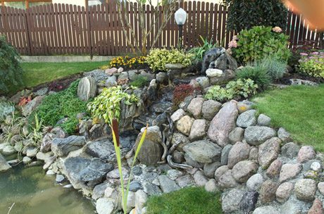 ALPINARIUMAS: Lauko akmenis šeimininkai panaudojo ne tik tvenkinio krantams sutvirtinti, bet ir įspūdingam alpinariumui sukurti.