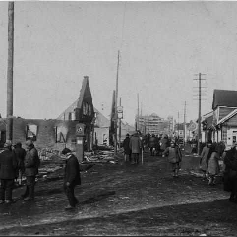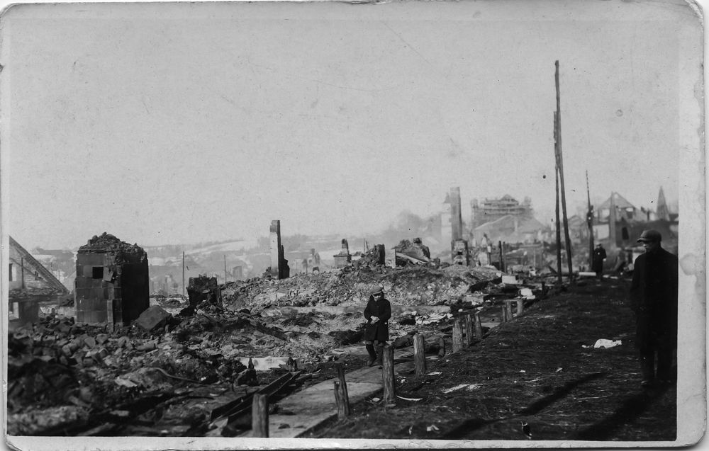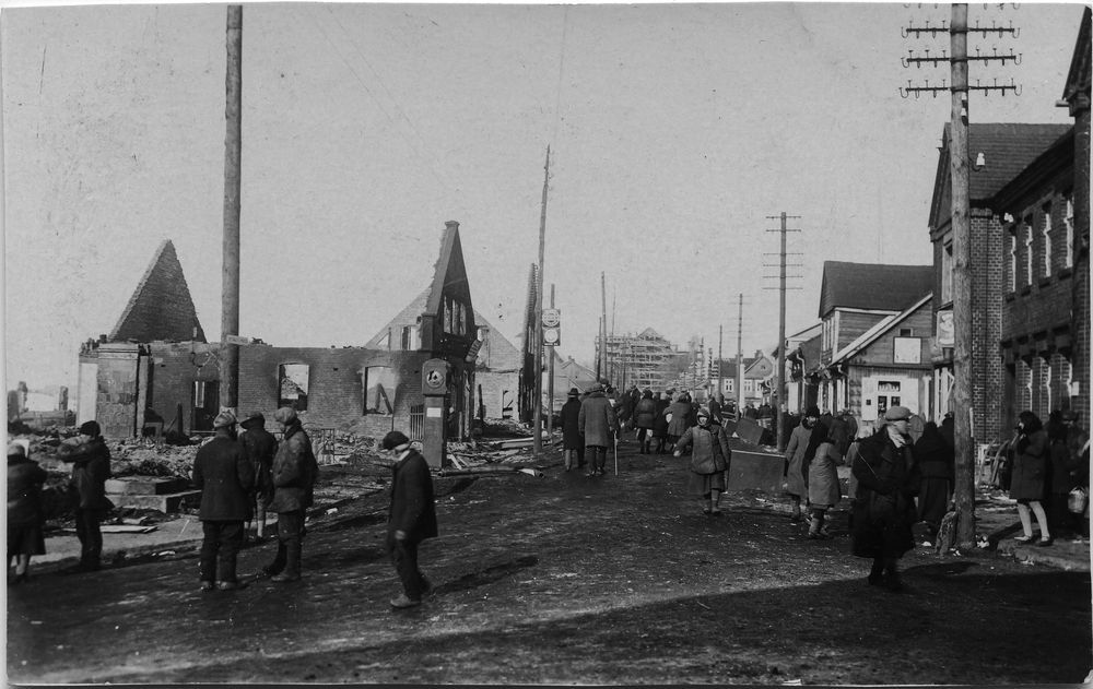 Nudegusios gatvės kiek tvarkomos, vietoj nudegusių telegrafo stulpų statomi nauji... Gaisro vaizdas klaikiai atrodo.“