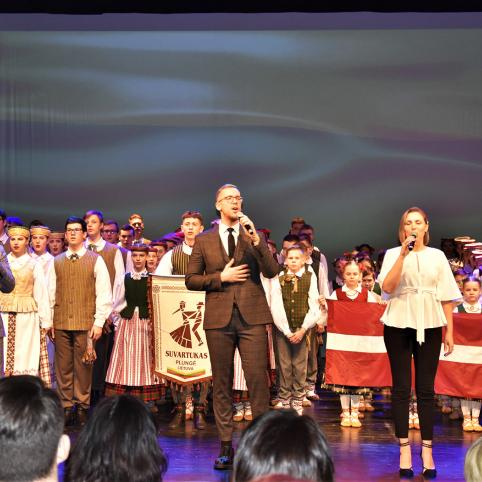 „Mes čia, Lietuvoje, esame laisvi ir galingi“, – sakė renginį vedusi Rita Raukaitė, kartu pasveikindama scenoje išsirikiavusius šventės dalyvius – latvių vaikų ir jaunimo šokių kolektyvą „Memelite“ iš Bauskės, tautinių šokių ansamblį „Šėltinis“ iš Šiaulių, Panevėžio Juozo Balčikonio gimnazijos jaunimo liaudiškų šokių grupę „Siaustinis“ bei festivalio šeimininkus – Plungės kultūros centro vaikų ir jaunimo liaudiškų šokių studiją „Suvartukas“, kurios vadovė – Ilona Baltikauskaitė. Būtent jai plungiškiai yra dėkingi už jau penkioliktą kartą visus džiuginusį festivalį „Laisvės vaikais“.