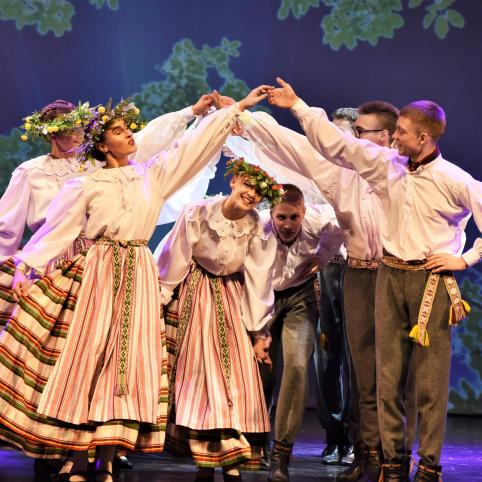 Prieš pasirodant minėtiems kolektyvams, susirinkusieji kartu su grupe „Žemaitukai“ ir atlikėja Edita Bodrovaite–Rukiene sugiedojo Lietuvos himną. Po „Tautiškos giesmės“ scenoje duoklė atiduota tautiniam šokiui. Pirmieji į sceną žengė šventės šeimininkai, dovanoję ne vieną gražų liaudišką šokį. Vėliau pasirodė ir šventės svečiai. Žiūrovai visus juos apdovanojo gausiais plojimais, o R. Matulis pamalonino dar ir atminimo dovanėlėmis bei padėkos raštais.