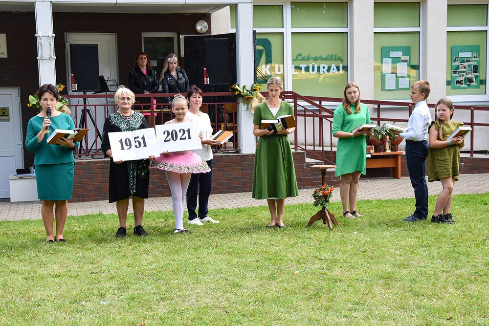Jau rudeniškai išpuoštame bendruomenės namų kieme šventė prasidėjo menine instaliacija – be žodžių, skambant klasikinei muzikai, įtraukiant mažus ir jau ne vieną dešimtmetį nugyvenusius labardiškius, priminusia susirinkusiems Labardžių kultūros istoriją.