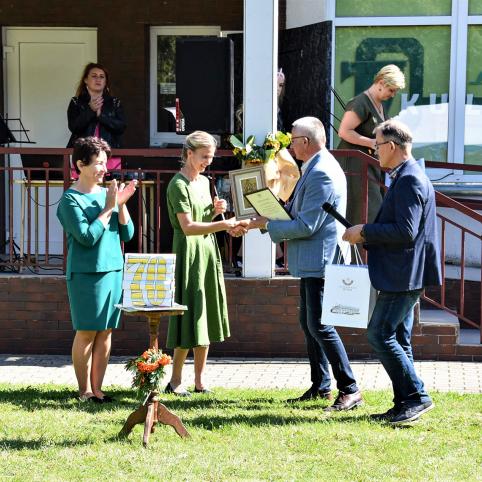 O kai dainos, šokiai, padėkos ir sveikinimo kalbos išseko, žavioji šventės vedėja visus pakvietė prie vaišių stalo. „Nepasidyvikit, vaišės skanios“, – ragino ji.