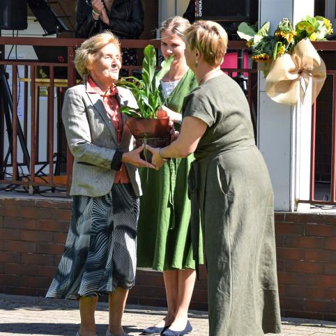 Prie mikrofono stojo ir pati bendruomenės pirmininkė L. Jurkienė. Kaip sakė šventę vedusi Sandra Adomaitienė, įkalbėta šio nelengvo savanoriško darbo imtis prieš trejus metus ir per tą laiką nuveikusi daug darbų, įdėjusi daug širdies. Sugraudinta gražių žodžių ir gausių plojimų,