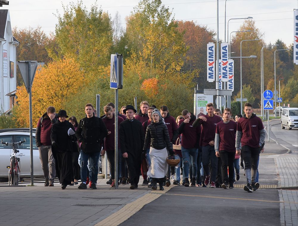 Tiesa, čia prie TVM bendruomenės prisijungė ir „Saulės“ gimnazijos moksleivių grupelė. Draugėn susibūrę moksleiviai čia ne tik užbaigė skaitymus, bet ir išgirdo pačio Vaižganto, kurį įkūnijo Daimonas Budrys, kalbą. Vaižgantą per visą miestą lydėjo dvi jo šeimininkės – mokytoja I. Klimaitė ir moksleivė Gabrielė Lukaitė.