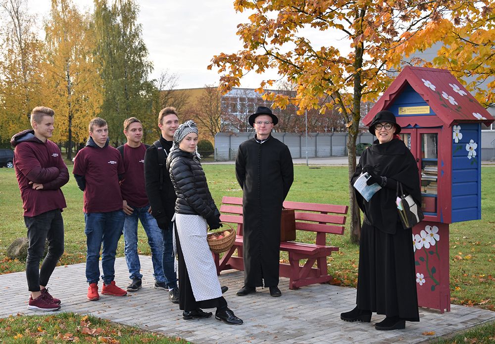 Minėdami Vaižganto metus, ir šįkart moksleiviai galutine stotele pasirinko viešosios bibliotekos kiemelį, kuriame pastatytas rašytojo 150-osiosms gimimo metinėms skirtas suolelis. Prie pastarojo ir užbaigti skaitymai.