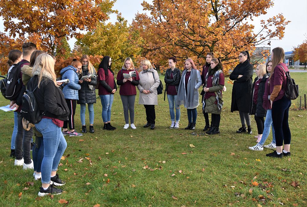 „Žemaičio“ kalbinta lietuvių kalbos ir literatūros mokytoja metodininkė Danutė Sausdravienė pasakojo, jog neįprastoje pamokoje dalyvavo 11–12 klasių mokiniai. Keliaudami J. Tumo-Vaižganto gatve ir stabtelėdami tam tikrose vietose, jie skaitė minėto rašytojo kūrinį „Dėdės ir dėdienės“.