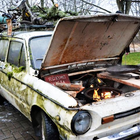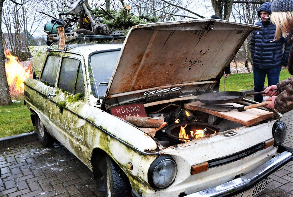 Prie švenčiančių plateliškių vakare prisijungė ir iš kitur atvykę persirengėliai. Kalvariškiai kartu su savimi atsitempė net zaporožietį su jame įtaisytu griliu, kuriame čirškėjo gardžios dešrelės.