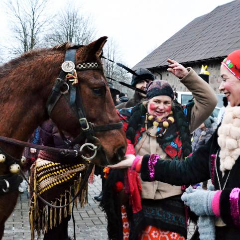 Užgavėnių antradienis Plateliuose, kaip ir kasmet, prasidėjo nuo ankstyvo ryto, kuomet į miestelio gatves arklio traukiamu vežimu pasileido didžiulė persirengėlių kompanija – daktarai, giltinės, velniai, ožiai, čigonai, vestuvininkai. Plėšdami vieną už kitą gražesnes dainas jie siautėjo po sodybas, ragindami jų šeimininkus padėti greičiau prisikviesti pavasarį.