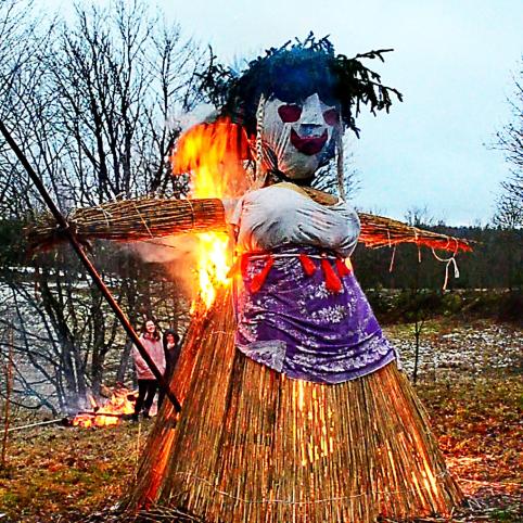 Pasisvečiavę aplinkinėse gyvenvietėse, vakarop plateliškiai sugužėjo į miestelio aikštę. Iš jos gausi persirengėlių svita patraukė prie buvusios Platelių dvaro jaujos, kur visų laukė siautulinga šventė, gardūs blynai ir kiti skanėstai. Žinoma, neapsieita ir be Morės deginimo tradicijos.