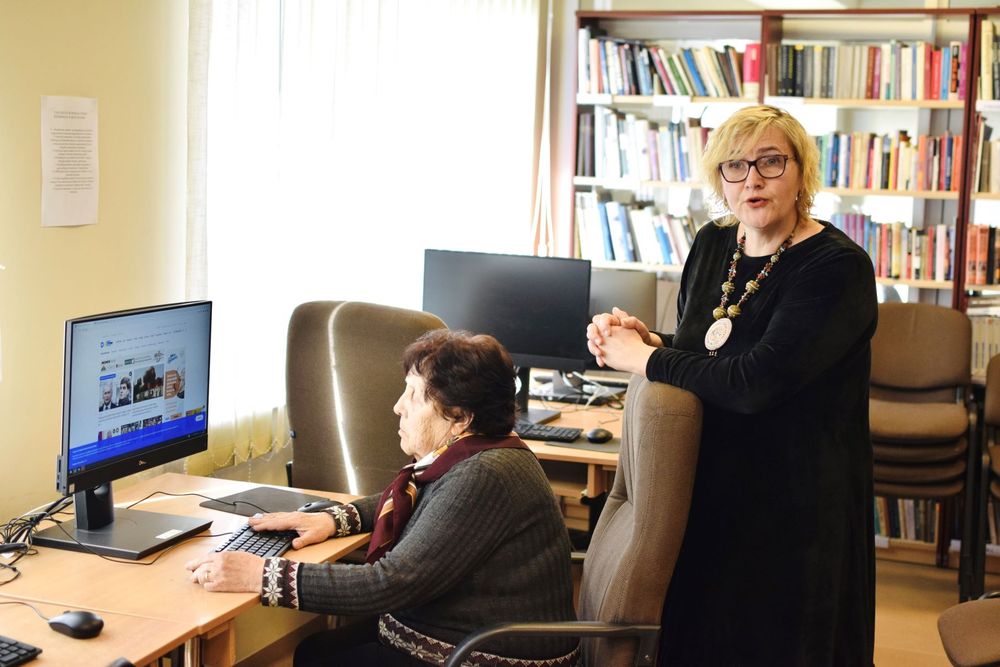 M. Gedvilienė mielai padeda į biblioteką užsukusiems senjorams pramokti naudotis kompiuteriu