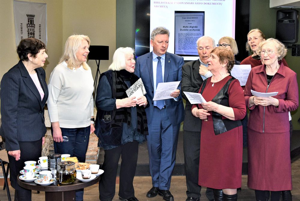 Gražaus susitikimo metu būta ne tik proginių kalbų ir sveikinimų, bet ir dainų. Sukaktuvininką pasveikino ir politinių kalinių bei tremtinių choro „Tėvynės ilgesys“ choristės, dovanojusios vieną mėgstamiausių Mato Algirdo dainų. Ją drauge su choristėmis traukė ne tik jubiliatas, bet ir meras A. Klišonis bei kiti renginio dalyviai. Žinoma, jubiliejaus proga nuskambėjo ir „Ilgiausių metų“.
