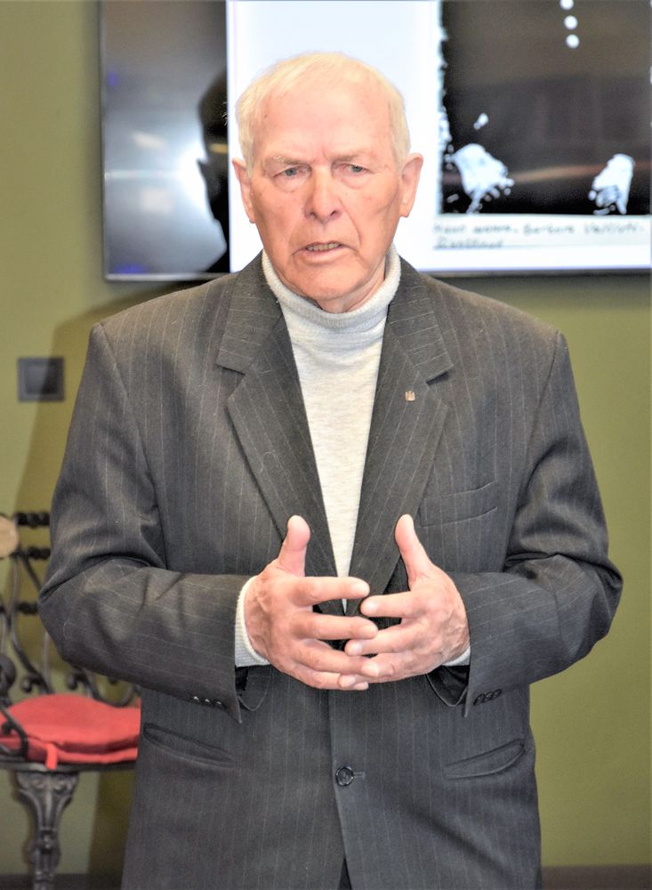 Kalbėdamas jubiliatas nepamiršo padėkoti visiems, kurie atėjo jo pasveikinti. „Visus aš jus myliu, kaip dabar sakyti madinga. Tegu gyvuoja Lietuva ir slava Ukrainie“, – neslėpdamas susijaudinimo sakė šventės bibliotekoje kaltininkas.