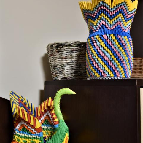 Po avarijos, netekęs darbo ir būsto, Algis prieglobstį rado Plungės krizių centre. Būnant ten pramoko iš vytelių pinti krepšius ir vainikus. Pasibaigus vytelėms (pasirodo, jų pirkti reikia vykti į kitą Lietuvos pakraštį), centre rankdarbių terapijos užsiėmimus vedančios Ramutės Gedgaudienės buvo pamokytas, kaip pinti iš senų laikraščių.