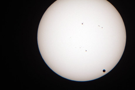 VENERA: Per stiprų šviesos filtrą kunigui pavyko nufotografuoti Venerą, keliaujančią pro saulės diską.