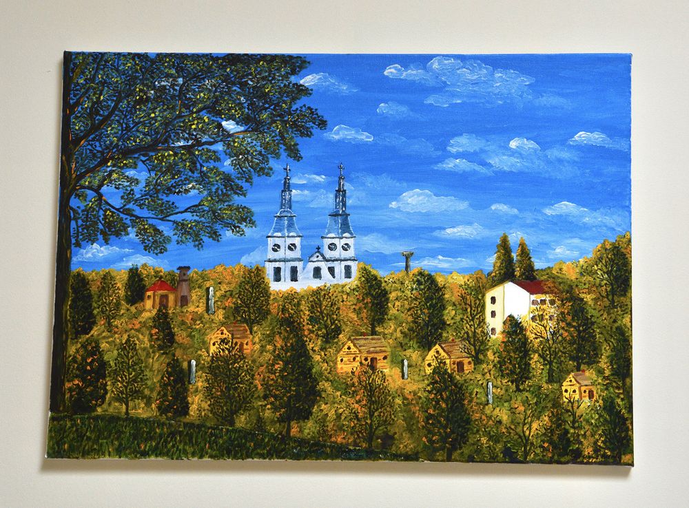 „Surasdavau kokią nuotrauką su patinkančiu vaizdu ir nupiešdavau, dar vieną kitą detalę pridėdavau. Piešiau taip, kaip man pačiai gražu. O kartais išeidavau į pievas ir laukus, piešdavau trobas, bažnyčias“, – kalbėjo moteris. Ir atskleidė savo paveikslams pati net rėmelius bei porėmius gamindavusi.