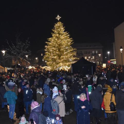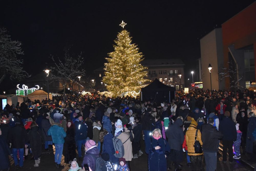 Garbingiausio vakaro svečio užduotis buvo įžiebti Plungės gražuolę – ši auksu sutvisko visiems garsiai suskaičiavus: „5! 4! 3! 2! 1!“. O tada visi suskubo fotografuotis prie išdabintos eglės, šalia kurios įkurdintos ir švytinčios dekoracijos su mažomis eglaitėmis. Įsiamžinus prie žaliaskarės, buvo galima traukti į meduoliais ir kitais gardėsiais kvepiančią mugę.