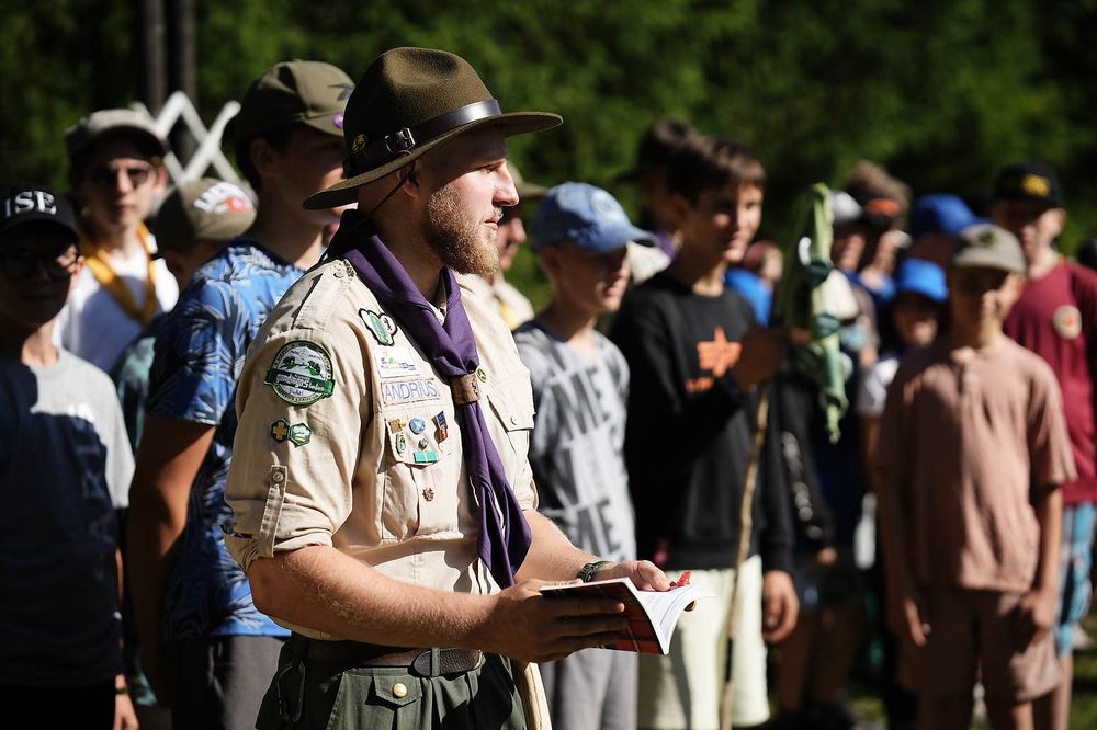 Vienas gražiausių dienos momentų buvo skirtas skautams. Jie susibėgo į neeilinę rikiuotę, kurioje įžodžius davė naujos sesės skautės Enrika ir Amelija.