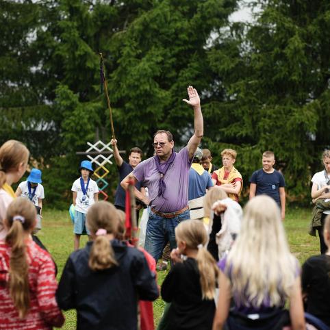 Po kiek neįprastos mankštos visos 10 skilčių, siekdamos tapti paslaptingos „Fėjų šalies“ gyventojais, iki pietų kartu su vadovais kūrė savo herbus, amuletus, rūbus, legendas, po pievas bei miškus ieškojo dovanų „7 karalysčių“ karalienei Monikai.