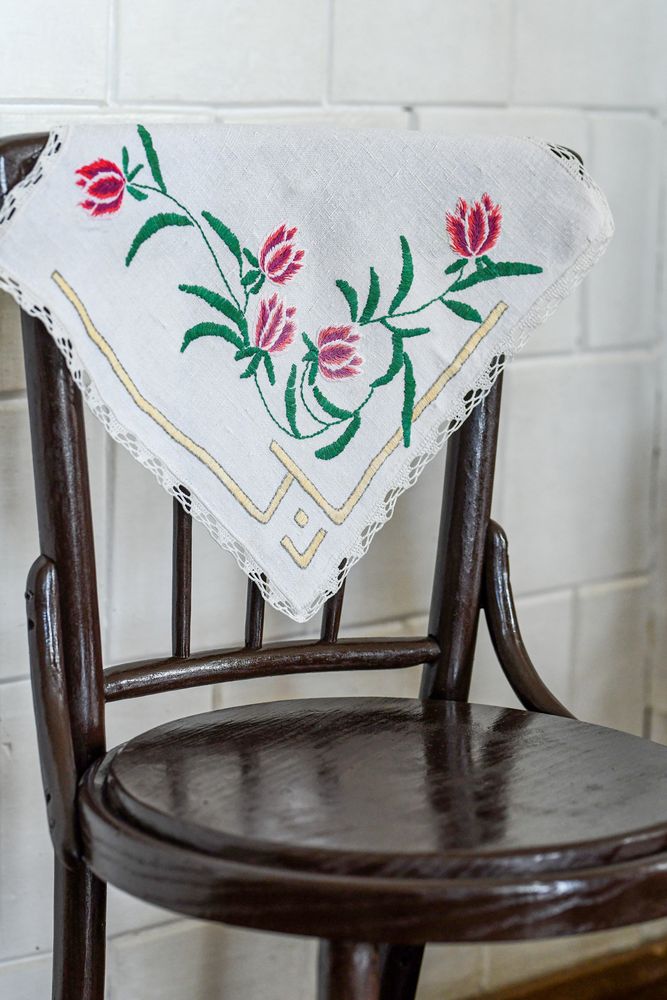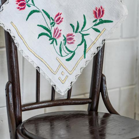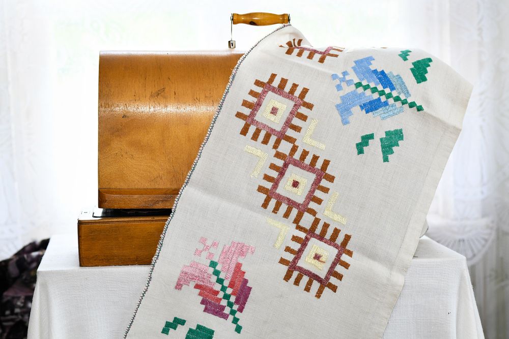 „Ardydavom kojines, lininius rankšluosčius ir megzdavom bliuzeles, sijonus. Kur važiuodavom, su savim visad mezginį turėdavom. Atsiradus parduotuvėse visokių grožybių tie rankdarbiai pasimiršo, tik mama jų nepametė“, – sako Genutė ir skuba rodyti išsaugotus mamos gal prieš 6-is dešimtmečius siuvinėtus rankšluosčius – tokius, kokius seniau kabindavo tarpdury.