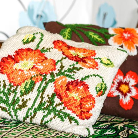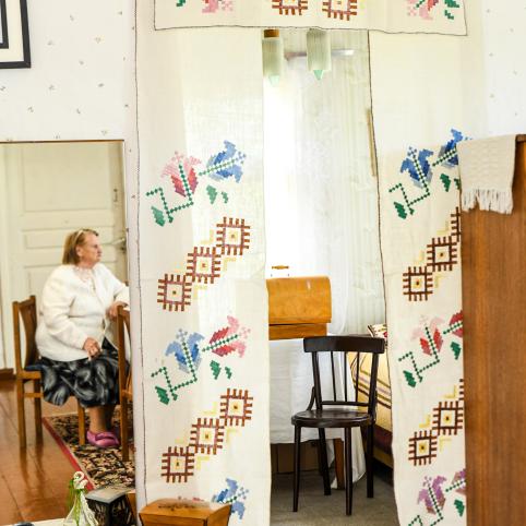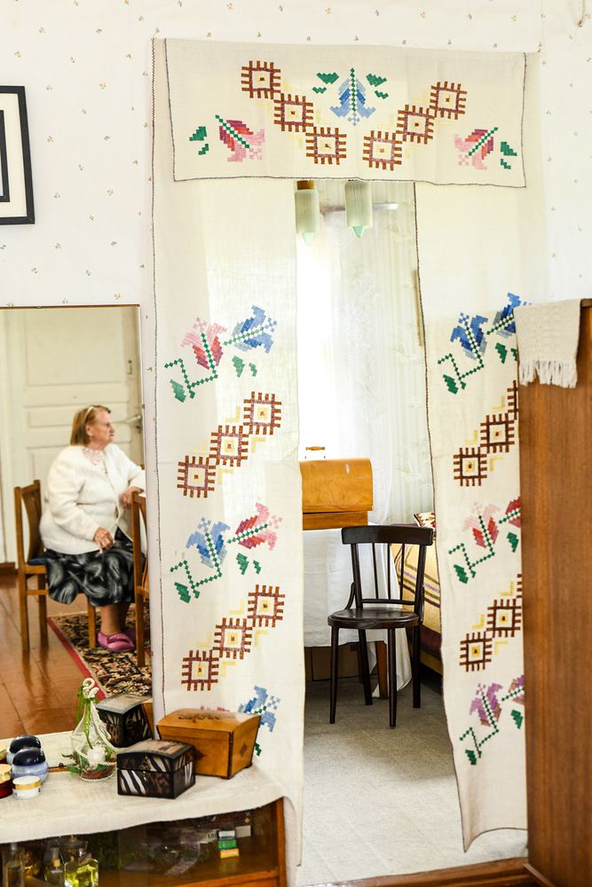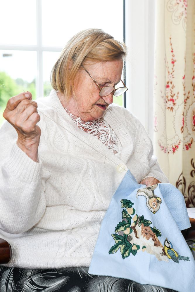 Bet kol kas, kol vasara ir netrūksta šviesos, moteris dienas leidžia įsitaisiusi savo mėgstamame fotelyje prie lango ir kryželiu siuvinėdama paveikslus. Rankšluosčius, staltieses ir servetėles įvairiais ornamentais margino nuo pat jaunystės, o štai siuvinėjimo kryželiu techniką įvaldė tik sulaukusi 70-ies. Sako, pamačiusi, kaip viena dukra taip siuvinėja, ir taip susidomėjusi, kad iki šiol negali atsitraukti.