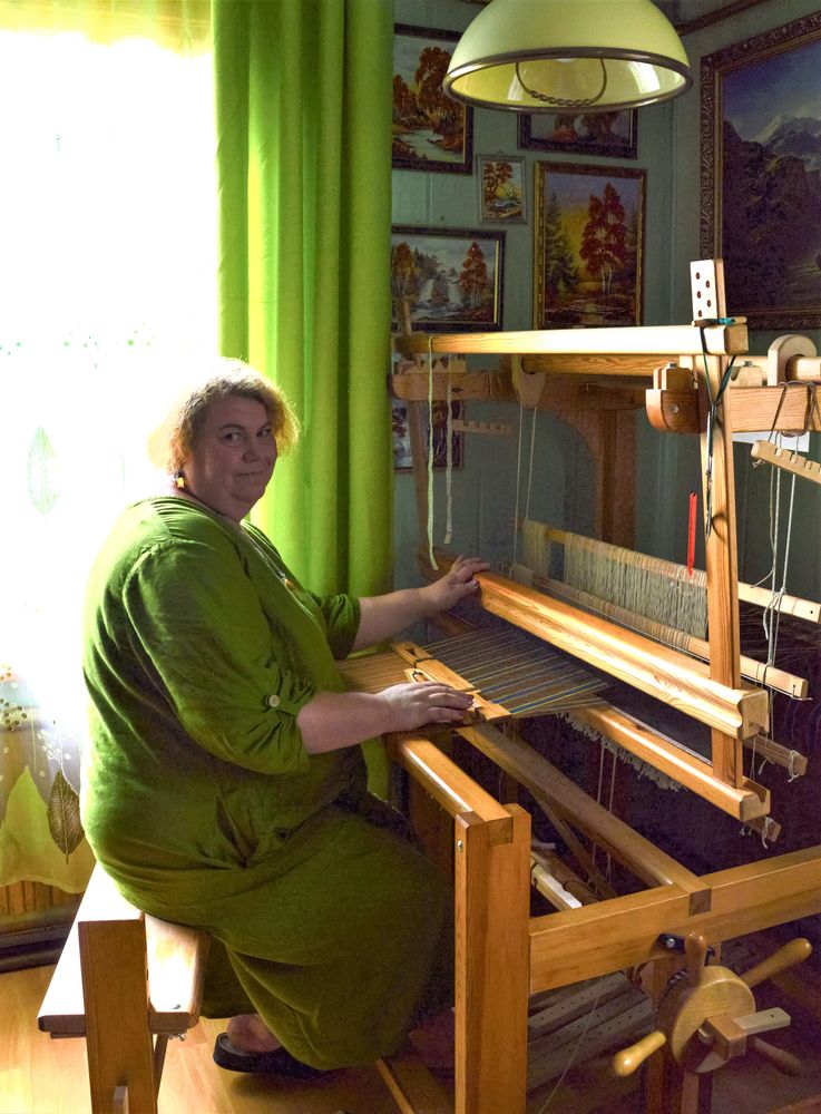 Padedama tautodailininkės Laimutės Puidokienės išaudė savo pirmuosius grindų takus, rankšluosčius, šalikus ir stalo takelius.