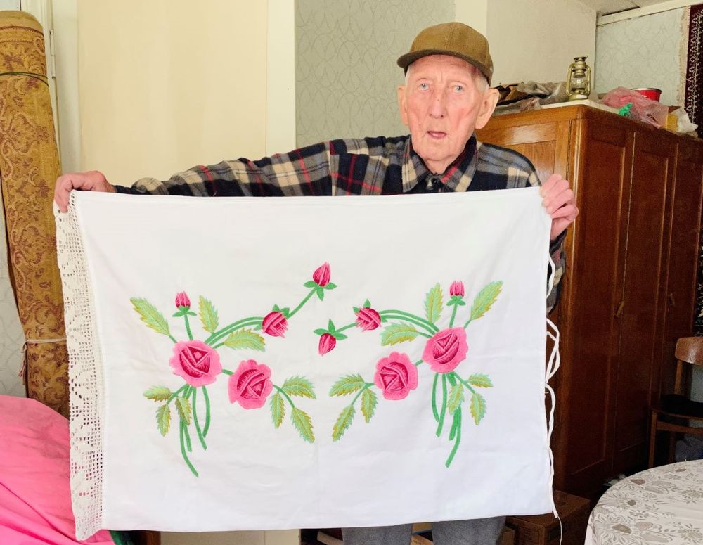 Išrodęs visus pačio siuvinėtus audeklus, kuriais labai mėgsta puošti kiekvieną namų kertelę, senolis skubėjo praverti spintų duris ir pademonstruoti sukauptą drabužių ir staltiesių kolekciją. Užaugęs nepritekliuje, išmoko kiekvieną rūbelį ar rankon pakliuvusį daiktelį saugoti ir taupyti kaip nežinia ką.