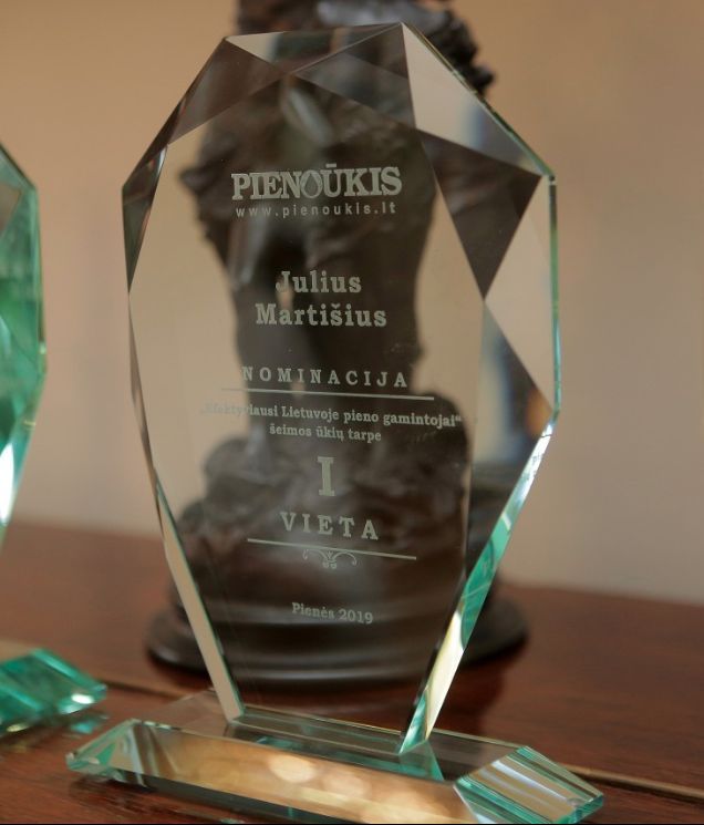 Spa­lio 11-ąją Rau­dond­va­ry­je (Kau­no ra­jo­ne) šeš­tą kar­tą vy­ko efek­ty­viau­sių ir di­džiau­sių pie­no ūkių ap­do­va­no­ji­mai „Pie­nės 2019“. Ren­kant sėk­min­giau­sius pie­no ūkius, įmo­nės ir šei­mos ūkiai at­ski­rai įver­tin­ti dve­jo­se ka­te­go­ri­jo­se – pa­gal su­pir­kė­jams par­duo­to bei pa­gal per me­tus iš vie­nos kar­vės pri­melž­to pie­no kie­kį. Šie­met sėk­mė nu­si­šyp­so­jo net ke­tu­riems Plun­gės ra­jo­no ūki­nin­kams. Jie pa­te­ko į sėk­min­giau­sių­jų de­šim­tu­kus. O džiu­giau­sia, kad pa­gal efek­ty­vu­mą tarp šei­mos ūkių re­zul­ta­ty­viau­siu pri­pa­žin­tas Ju­liaus Mar­ti­šiaus ir jo žmo­nos Dai­nos ūkis Vieš­to­vė­nuo­se.