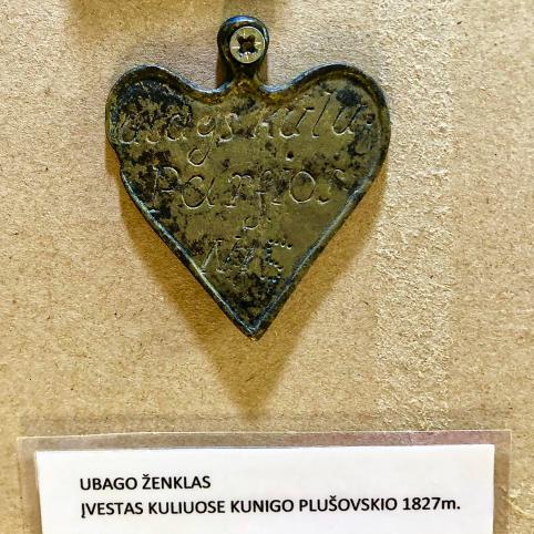 Ku­lių kraš­to mu­zie­ju­je sau­go­mas uni­ka­lus šio kraš­to da­ly­kas – uba­go ženk­las. Jį 1827 m. su­gal­vo­jo įves­ti pa­ra­pi­jo­je kle­bo­navęs Sta­nis­lo­vas Plu­šaus­kis. Už tam tikrą ne­di­duką mo­kestį uba­gas nuo kle­bo­no gau­da­vo žal­va­rinį pa­ka­buką su už­ra­šu  „ubags Ku­liu par­fios“, kurį pri­valė­jo ne­šio­ti pa­si­ka­binęs ant kak­lo. Tas ženk­las skyrė juos nuo „sve­timų“ duo­ne­liau­tojų, nes pa­ra­pi­ja bu­vo ne­ma­ža, jai pri­klausė 23 kai­mai. Ku­liai stovė­jo ke­lių san­kir­to­je, todėl pro šalį ke­liau­jan­čių el­ge­tau­tojų ne­trūko.