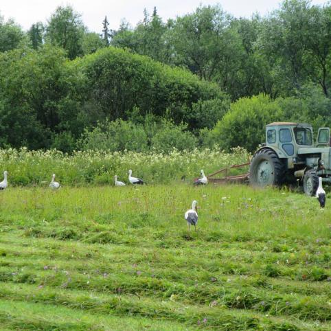 Po pievą maklinėjantys gandrai kaip greiti sanitarai dažnai tik užbaigia sužeistųjų kančias. Kas be ko, gandrams pakliūva ir sveikų gyvūnėlių, bet neteiskime jų. Vietoj to paklauskime, o kiek kiškučių, stirnų, kitų gyvūnų sumedžioja žmonės?