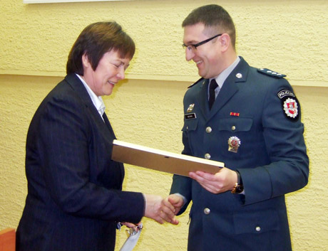PADĖKA: Aktyviai saugaus ūkio socialinei partnerei, ūkininkei Reginai Jarušienei Radviliškio rajono policijos komisariato viršininkas Saulius Baltakis įteikė padėkos raštą.