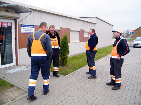 Vyrų brigada grįžta baigusi darbą. Šiandien keitė geležinkelio bėgius Užpelkiuose.
