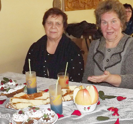 KVIETIMAS: Vaišintis biskvitiniu pyragu, keksiukais ir obuolių bei morkų sultimis kviečia „Švėtės“ klubo moterys (iš kairės) Valerija Mykolaitienė ir Zinaida Giedraitienė.