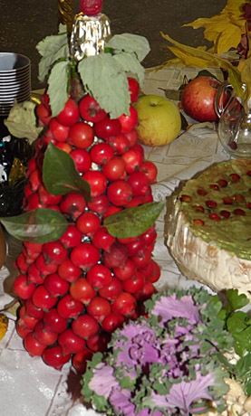 Žiurių kaimo bendruomenės stalas išsiskyrė iš klevo lapų susuktais rožių žiedais, o iš maisto gaminių – bendruomenės pirmininko Arūno Činčio obuolių saldainiais, aplietais juoduoju šokoladu.