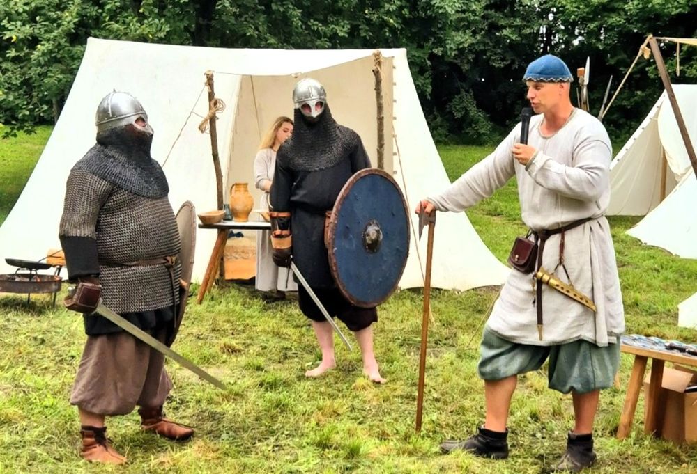 Netrukus vyrai, pasidabinę masyviais šarvais, galvas apsigobę šalmais, vienoje rankoje tvirtai laikydami skydą, o kitoje – kalaviją, pademonstravo karybos veiksmus. Po įspūdingų istorinių pasakojimų ir riterių kovų pasirodymų buvo galima sužinoti ir apie mistinio arba dar kitaip vadinamo akmeninio alaus darymo vingrybes – apie jas pasakojo iš Kauno atvykęs profesionalus aludaris Artūras Masiliauskas.