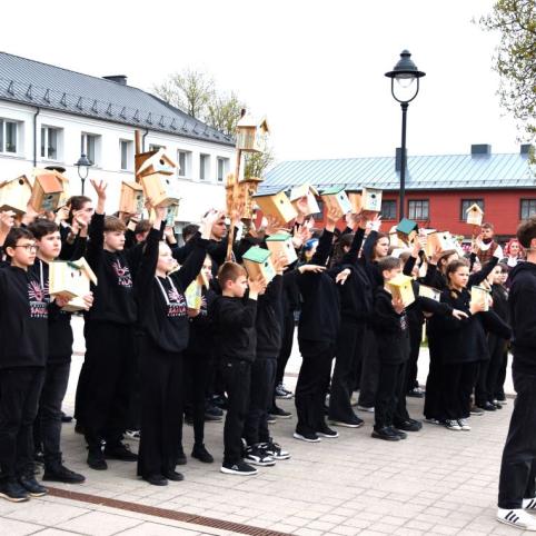 Aikštėje laukė ne tik minia žmonių, bet ir daugybė ją puošusių inkilų. Plungės miesto ir rajono darželiai, mokyklos, kitos organizacijos, pavieniai žmonės iš viso sumeistravo apie 300 inkiliukų, tapsiančių namais būriui paukštelių, kurie savo čiulbėjimu mums visiems dar ilgai primins Dainų šventės aidus.