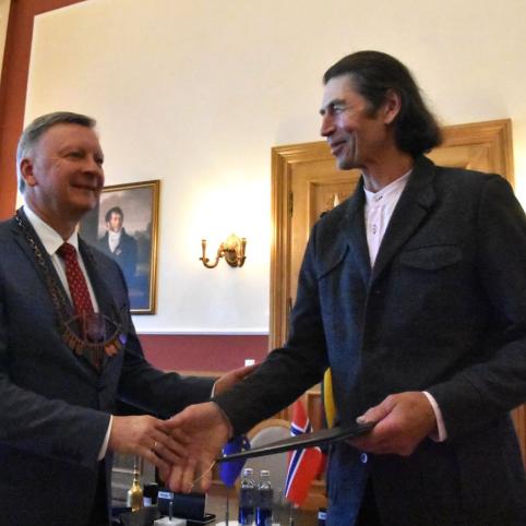 Neilgtrukus pereita prie pirmojo tą dieną klausimo – atnaujintos bendradarbiavimo sutarties su Bjerkreimo komuna (Norvegija) pasirašymo.