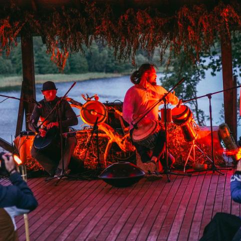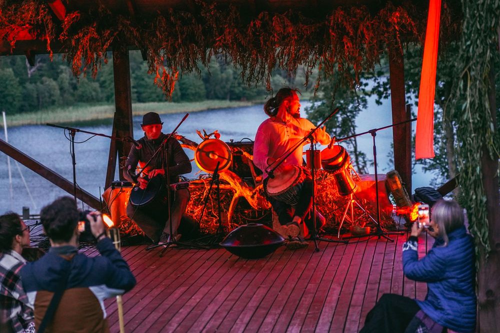 Po daugiau nei valandą trukusio Pijaus koncerto, temstant, suskambo varpas, kuris kvietė į dar kitokių garsų šalį. Skambant baltarusių Juros Donskovo ir jo draugo Dimos Popovo būgnų melodijoms, nuo kalniuko žemyn elegantiškai ėmė leistis septynetas mergaičių su šviesiais keramikiniais varpeliais rankose. Juos, papuoštus kiekvienai Platelių ežero salai būdingu akcentu, pagamino Platelių meno mokyklos mokiniai su mokytoja Lina Ruginiene.