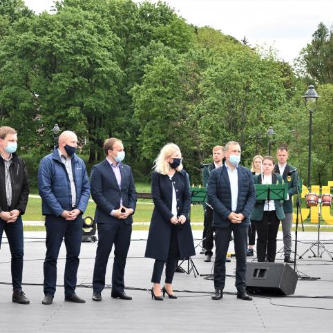 „Šią akimirką visą Lietuvą – visus jos kampelius: miestus, aikštes, skverus – užpildė muzika. Mes Plungėje sakome AČIŪ visiems, kurie padėjo būti šitą visą laikotarpį. Ačiū kaimynui, ačiū medikams, pareigūnams, prekybininkams, savanoriams, ačiū kultūros žmonėms, kurie budino, stengėsi palaikyti dvasią. Ačiū už tai, kad šiandien vėl galime susirinkti ir būti kartu“, – neslėpdamas susijaudinimo kalbėjo R. Matulis.