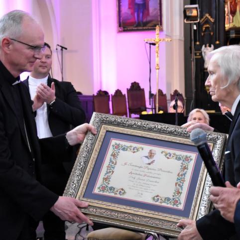 Susirinkusiuosius vėl pasveikinęs nuncijus P. A. Rajič šįkart sakė turintis ypatingą misiją pagerbti dar vieną Plungei daug nusipelniusį žmogų – Plungės garbės pilietį profesorių Juozą Domarką, kuris jau 18 metų yra tarptautinio M. Oginskio festivalio meno vadovas ir daug prisideda prie neblėstančio festivalio populiarumo, aukštos jo meninės vertės. Maestro įteiktas popiežiaus palaiminimas.