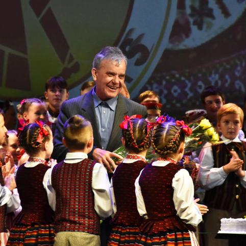 Ži­no­ma, vi­so to ko­lek­ty­vas ne­būtų pa­siekęs be sa­vo ener­gin­go­sios va­dovės I. Bal­ti­kaus­kaitės, ku­riai vi­sus tuos dvi­de­šimt metų tal­ki­na akom­po­nia­to­rius Ka­zys Bud­gi­nas.