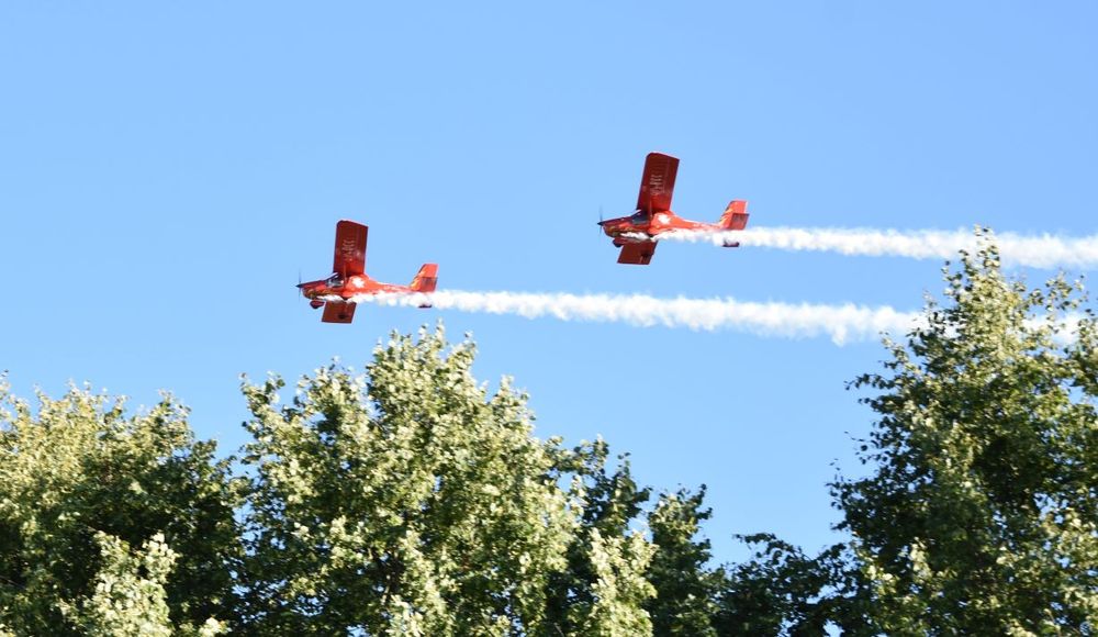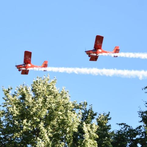 Šventiškai suplevėsavus vėliavoms, susirinkusieji pakviesti pasitikti staigmeną. Kokia ji, ko gero, nė vienas neįsivaizdavo. Tik dangų perskrodus neįprastam garsui visi suprato, jog žadėtoji staigmena – kvapą gniaužęs lėktuvų, į Šateikius atskridusių iš Šiaulių, pasirodymas. Tai – vieno vietos gyventojo ūkininko, šventės rėmėjo Justino Valančiaus dovana gimtadienį švenčiantiems Šateikiams. Įspūdingu lėktuvų pasirodymu liko sužavėti ir maži, ir dideli.