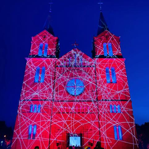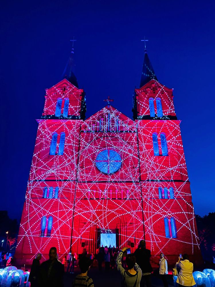 Nus­kambė­jus pa­sku­ti­nie­siems kon­cer­to akor­dams, su­si­rin­ku­siųjų laukė staig­me­na – baž­ny­čia ir te­ri­to­ri­ja ap­link ją su­švi­to įvai­rias­palvė­mis švie­so­mis, ku­rių ins­ta­lia­ci­jas Plungės kultū­ros cent­rui pa­dėjo su­kur­ti UAB „Švie­sos ir gar­so di­zai­nas“. Tai – šiuo­lai­ki­nių sce­nos menų fes­ti­va­lio „Eks­pe­ri­men­tinės me­no jung­tys“ da­lis.