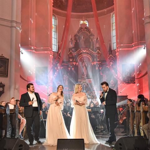 Prieš pra­si­de­dant įspūdin­gam kon­cer­tui, ku­rio me­tu baž­ny­čios erd­ves už­lie­jo už­bu­rian­ti mu­zi­ka, do­va­no­ta an­samb­lio „Il Sen­so“ so­listų Indrės Anan­kaitės, Ie­vos Bar­bo­ros Juo­za­pai­tytės, Lai­mo­no Ben­da­ra­vi­čiaus ir Kas­pa­ro Da­mu­lio, šiuo­lai­kinės mu­zi­kos hi­tus smui­kais in­terp­re­tuo­jan­čios grupės „Elect­ric La­dies“ mer­ginų ir Plungės kultū­ros cent­ro sim­fo­ni­nio or­kest­ro (va­do­vai  Ie­va ir Pau­lius Lyg­nu­ga­riai), šven­čian­čią Plungę pa­svei­ki­no ir V. Ged­vai­nis.
