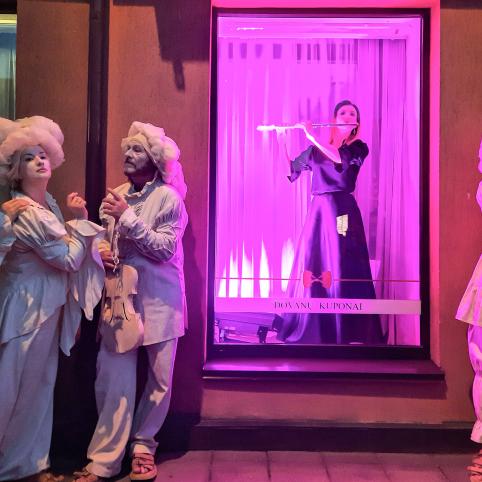 Pa­sig­rožėję neei­li­niu re­gi­niu, plun­giš­kiai Vy­tau­to gat­ve pa­traukė Se­na­mies­čio aikštės link. Mėgau­da­mie­si pa­si­vaikš­čio­ji­mu šventės da­ly­viai galė­jo stebė­ti įtrau­kiantį gatvės teat­ro mu­zi­kinį spek­taklį, kurį Kultū­ros cent­ras kūrė drau­ge su Klaipė­dos Pi­lies teat­ro ak­to­riais. Jų dėka per mu­zi­kos, dainų ir šo­kių sin­tezę bu­vo ga­li­ma iš nau­jo at­ras­ti Vy­tau­to gatvės pa­sta­tus.