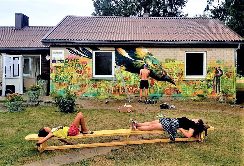 Ketvirtąją dieną stovyklautojų laukė kostiumo dailininkė ir dizainerė Polina Rumbeštaitė. Ji jauniesiems kūrėjams parodė, kaip savo jau pabodusius drabužius prikelti naujam gyvenimui. Ne ką mažiau įspūdžių stovyklos dalyviams dovanojo penktoji diena, kuomet vaikai kartu su dailininku ir gatvės menininku Edvardu Šepučiu turėjo unikalią galimybę grafičiais išmarginti Vaikų dienos centro išorinę sieną.