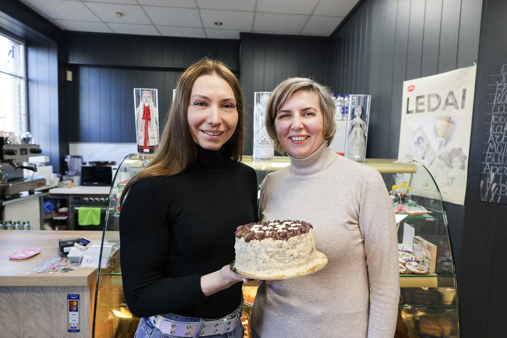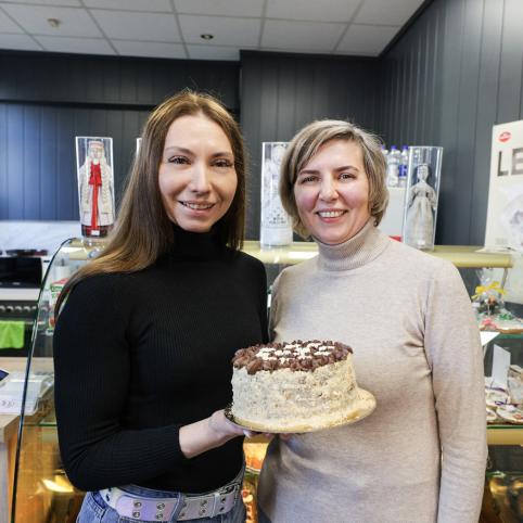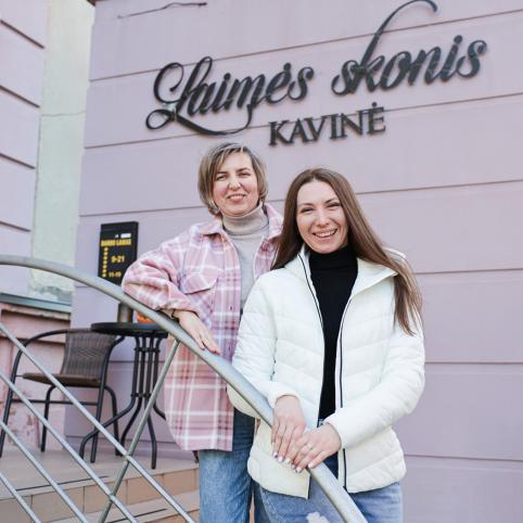 Rudens popietę su Kateryna Bodakva, mažosios bendrijos „Mrija“ vadove, ir konditere Aliona Dmitrijeva susitinkame kavinėje. Kvepia kava, vitrinoje išrikiuoti desertai, o ant vitrinos – „Motankos“ – tradicinės ukrainiečių lėlės, apsauga ir talismanas, namų darnumo, jaukumo simbolis. Šalia Lietuvos ir Ukrainos vėliavėlių stovi užrašas lietuvių kalba: „Atleiskite, mes lietuviškai gerai dar nekalbame“.