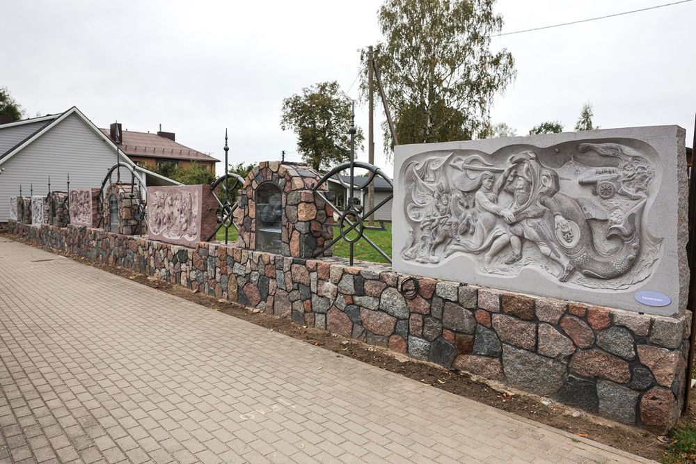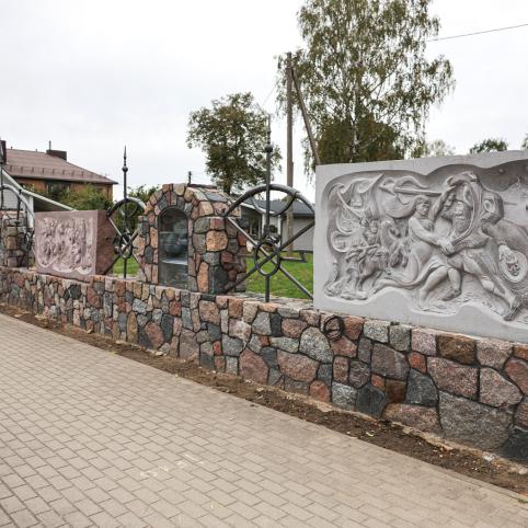 Šešias plokštes, vaizduojančias praeitį, sukūrė A. Adomaitis.