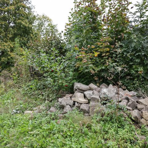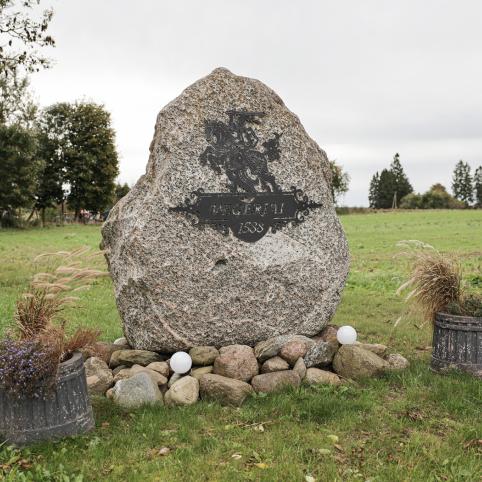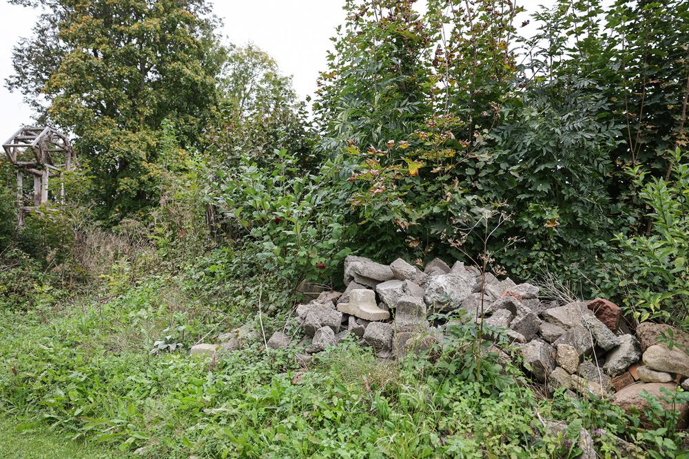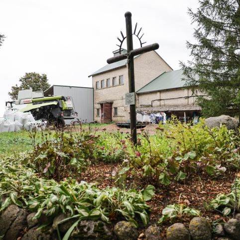 „Per 2018 metų žvalgymus laukuose radome daug su žiemgaliais susijusių radinių. 2022 metais A. Adomaitis sukūrė akmenų kompoziciją, akmenyje iškalė atrastą ietigalį, segę. Tikėtina, kad prie sodybos yra ir žiemgalių kapų. Šalia – ir pirmasis kapinynas, dabar – saugoma teritorija“, – parodo rankos mostu į laukus.